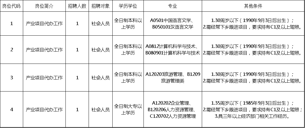 本次共招聘專項工作隊員4名。招聘崗位條件如下: