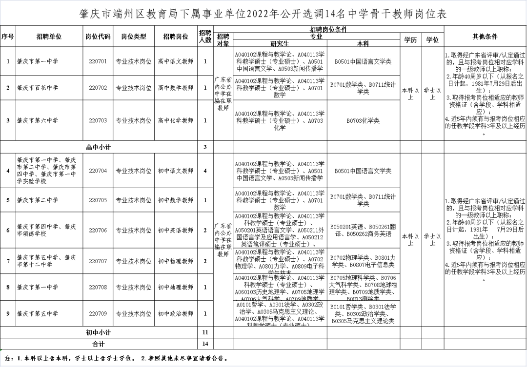 本次公開選調(diào)分9個崗位共14名中學(xué)骨干教師。