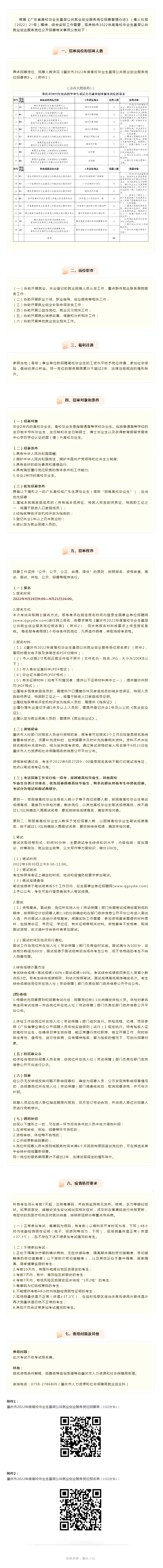 ?肇慶市2022年度高校畢業(yè)生基層公共就業(yè)創(chuàng)業(yè)服務(wù)崗位公開招募公告